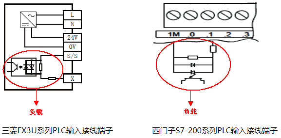 合肥志准电气以三菱FX3U PLC以及西门子S7-200 PLC为例来说明NPN和PNP开关如何接入到PLC控制系统中。根据接线开关接线图,应首先需要找出PLC中的负载是什么。如图所示: