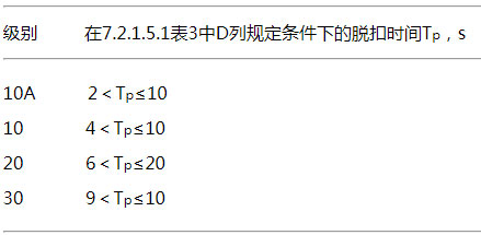 d.根据表2分类的脱扣级别或在7.2.1.5.1表3中D列规定的条件下脱扣时间超过30s时的最大脱扣时间,单位为s;
