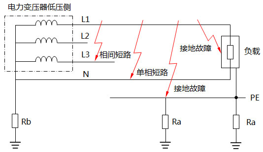 短路是指相线之间、相线与中性线之间的直接触碰,产生的电流就是短路故障电流。因为短路点的电阻很小,线路阻抗也很小,所以短路电流很大。