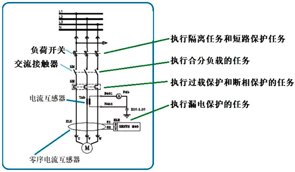 第三个概念:对于电动机回路,它的主回路中三个主要元件负荷开关、接触器和热继电器的任务是什么?