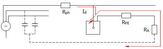 由于RA、RB阻值的限制,TT系统故障电流Id值一般仅为几安培至几十安培,比TN系统的故障电流小得多,一般情况下,使用过电流保护电器无法满足切断电源的要求,TT系统应采用剩余电流动作保护电器(RCD)作故障防护。