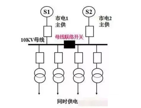 1)两路高压线路来自于同一区域变电站的不同高压开关或不同母线段。