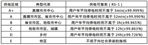 表2 各类供电区域的供电可靠率规划目标
